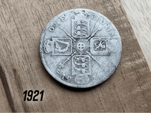 I chanced it and took my time. Then all of a sudden something popped out… A beautiful silver King George V florin dated 1921! Could have quite easily been dropped by a soldier way back then.