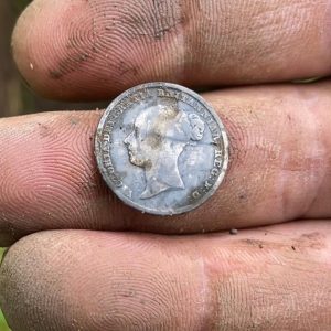 Then… BANG! Another high signal reading 21-22. I dug about 10’’ and revealed another Queen Victoria silver sixpence, dated 1883. In the morning I had recovered a total of 5 silver coins and about 10 pennies and half pennies from the 1800s it was amazing!